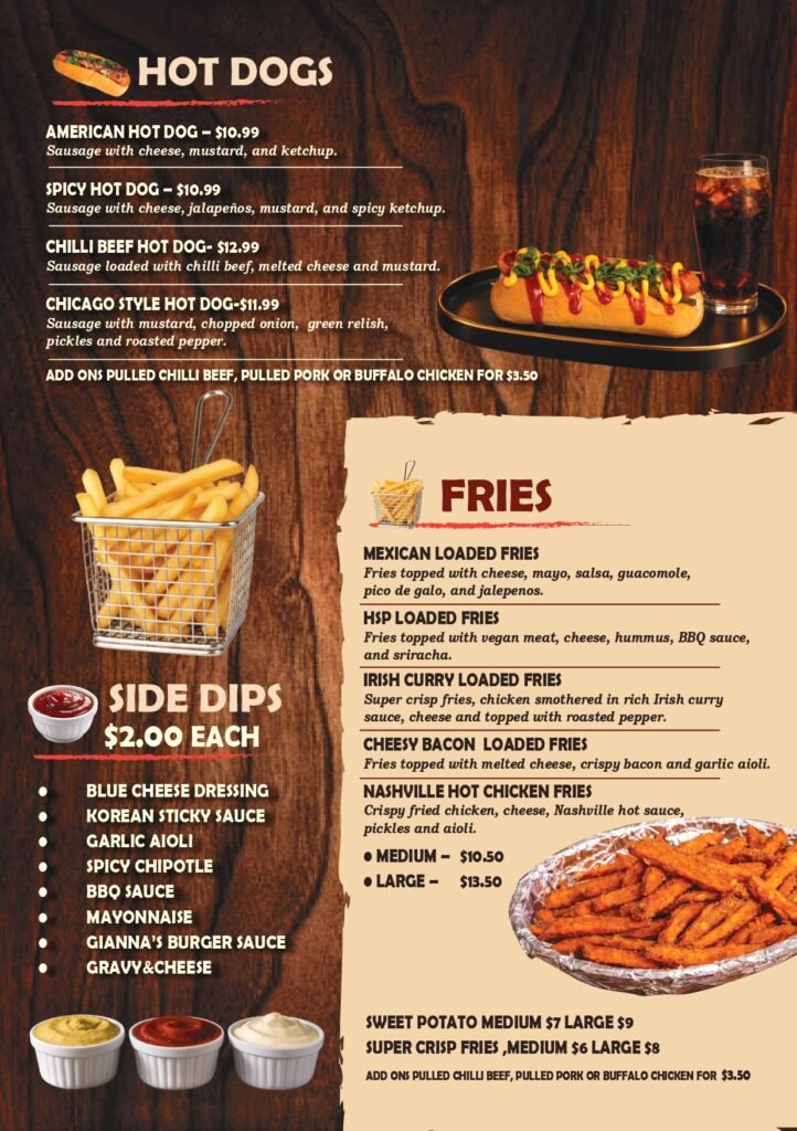 Discover our menu featuring gourmet burgers, wings, fries, and comfort favourites, all made fresh with quality ingredients and bold flavours.